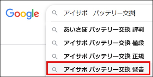 「アイサポ バッテリー交換 警告」とうキーワードを見つけました。