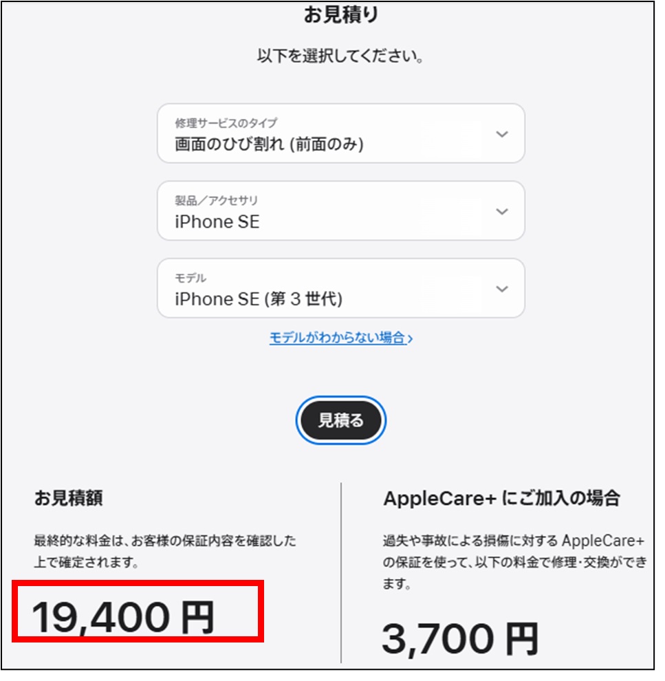 | 機種例 | Appleストア (保証未加入) | アイサポ | 価格差! |